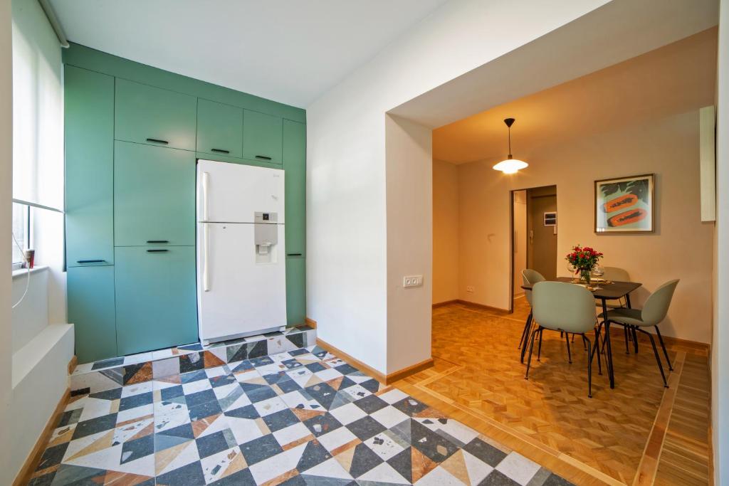 آشپزخانه کامل — با یخچال، اجاق گاز، وسایل آشپزی و صرف غذا در خانه ممکن است.