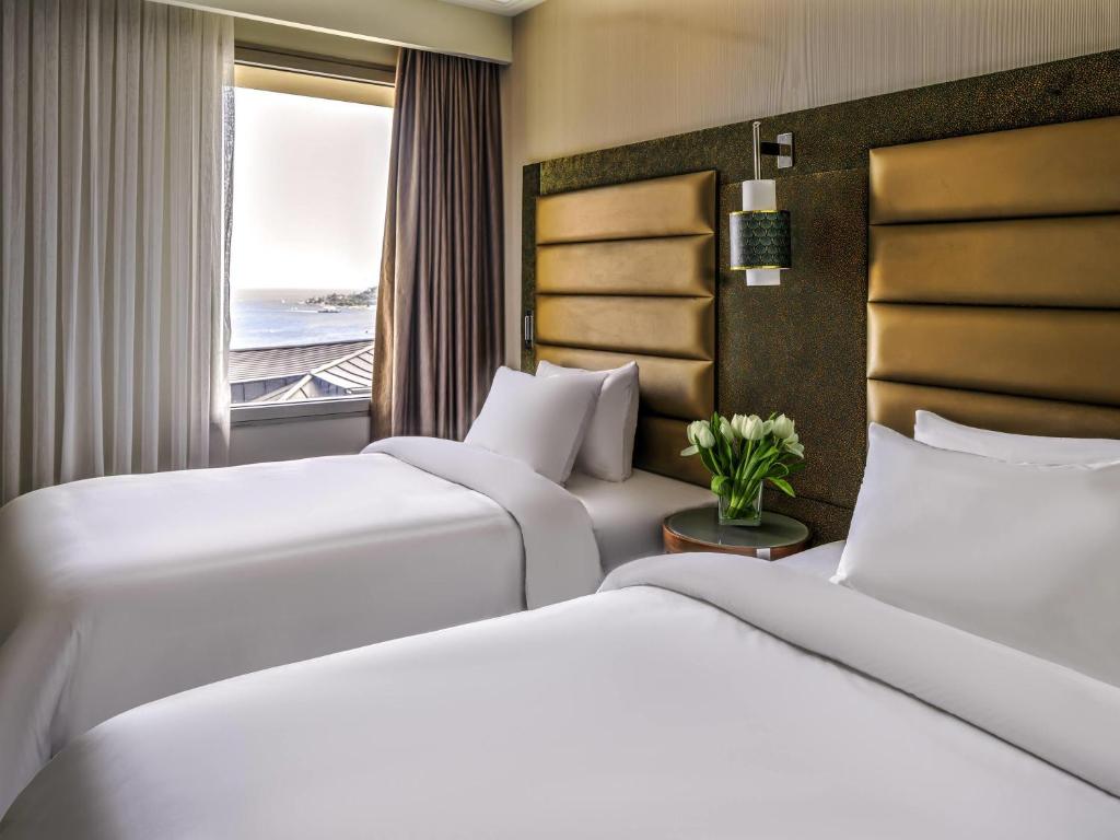 Superior Room — اتاقی با دکور مدرن و شیک، با تخت دابل، که نمایی به شهر دارد.