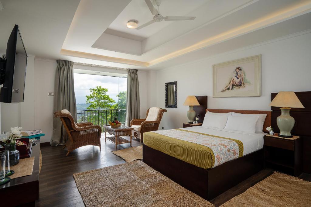 Deluxe Double Room — اتاقی دوتخته با چشم‌انداز کوهستان، مینی‌بار و بالکن.