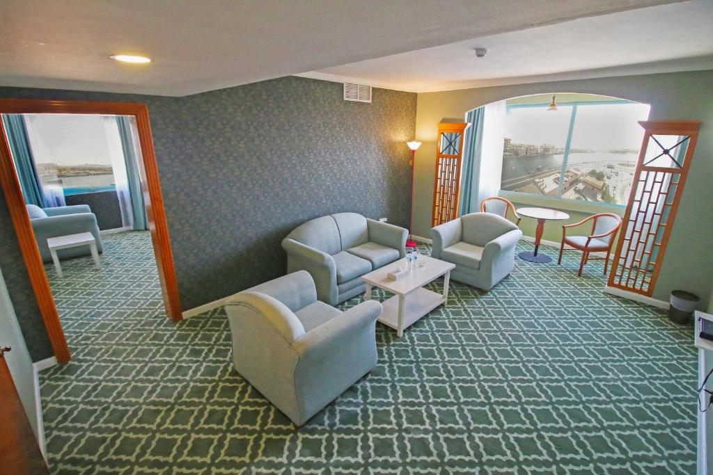 Corner Suite Room: سوئیت گوشهای با نشیمن مجزا، منظره خارقالعاده خور دبی، فضای خانوادگی و دکور شیک.