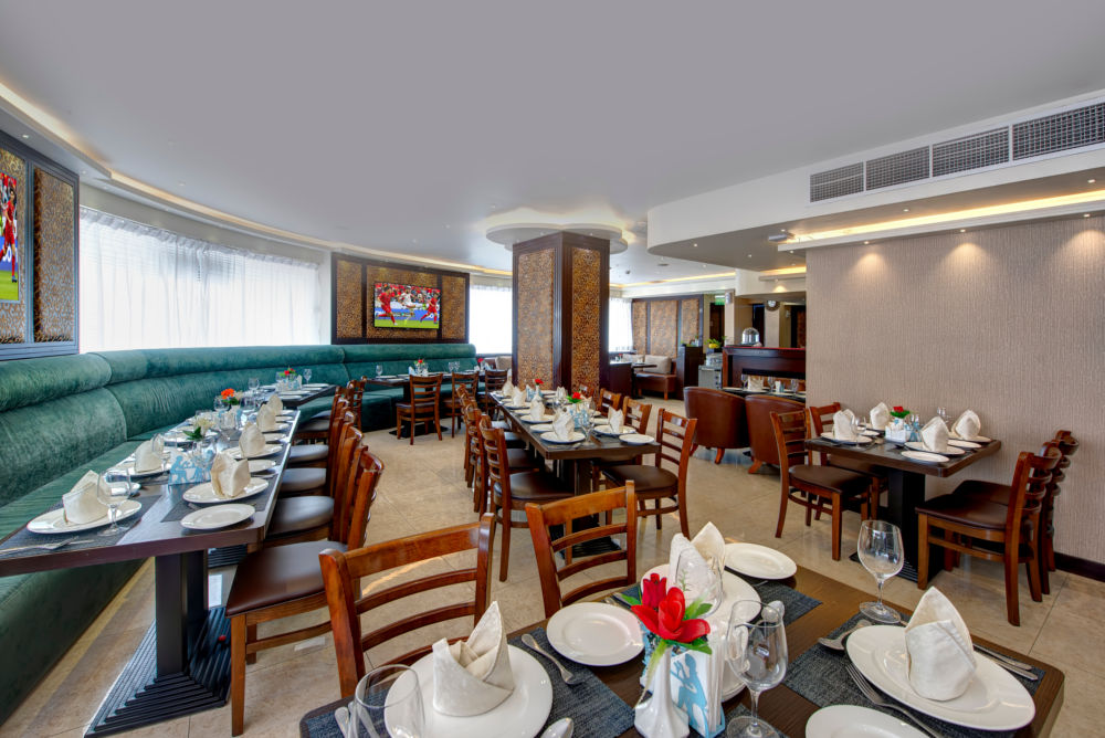 دو رستوران بینالمللی: لَژندا (فرانسوی و مدیترانهای) و ایندییا (هندی)، کافیشاپ و بار.