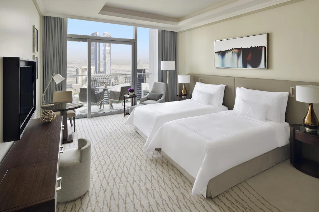 Premier Room: بزرگتر از Deluxe، با بالکن اختصاصی و منظره برج خلیفه.